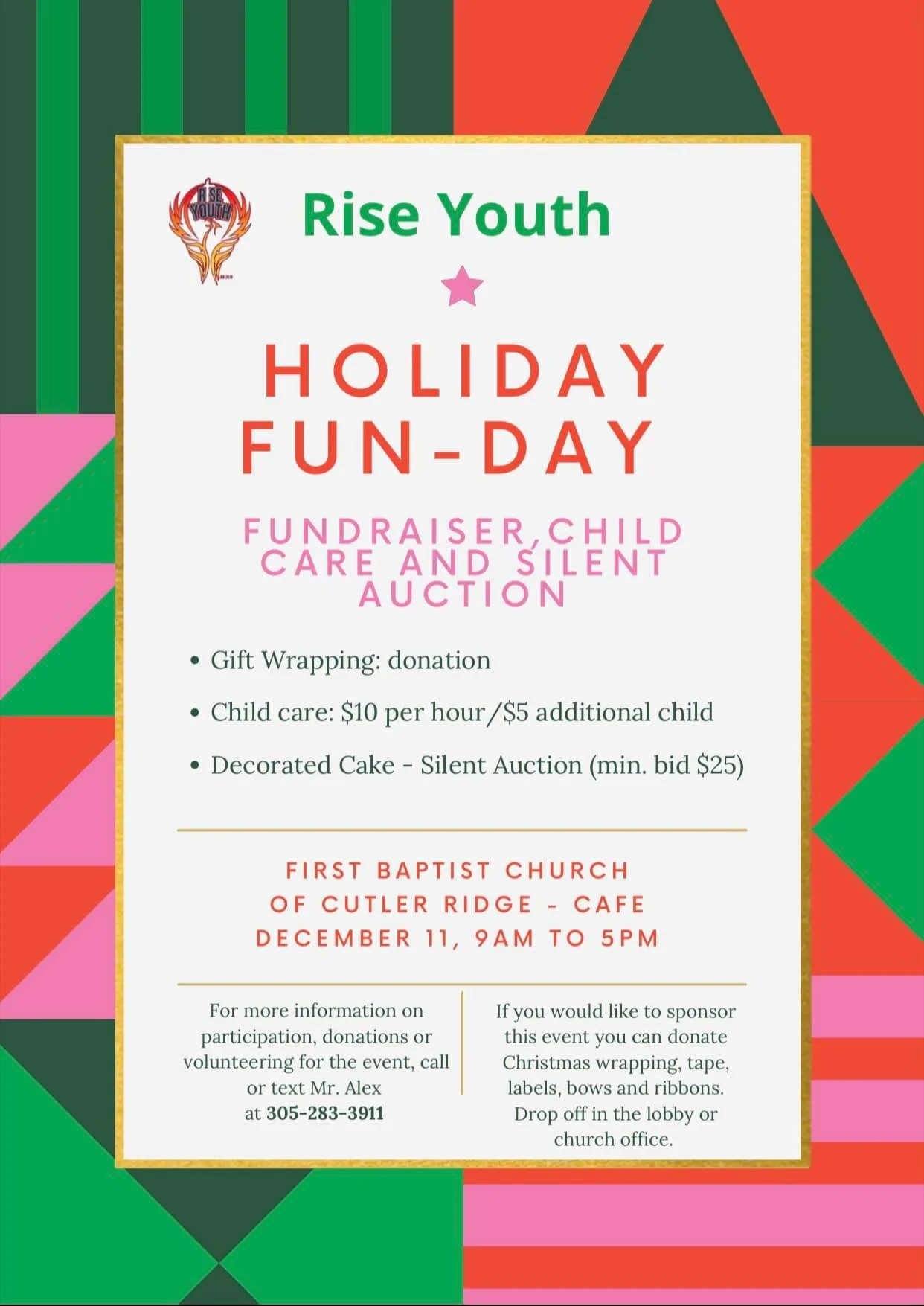 Youth Fund Raiser Thursday, December 9, 2021 11:30 AM 12:30 PM 11:30 12:30 First Baptist Cutler Ridge 10301 Caribbean Boulevard Cutler Bay, FL, 33189 United States (map) Google Calendar ICS